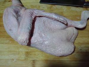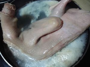 半片鸭拔毛斩指甲切去尾部洗净
