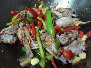 放入鸭块,生抽,少许鸭汤,翻炒入味,收浓汤汁即可