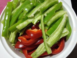 青椒红椒去蒂洗净切条