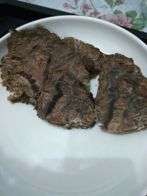 锅内放一个篦子,防止肉粘锅,大火煮开黄酱水,沸腾后放入牛腱子块,(肉不要提前淖水)再倒入调料粉,搅匀;水再次沸腾后,捞出浮沫,转小火炖约3个小时;炖的过程中要给肉翻几次身,1小时的时候,倒入1小碗老汤;直至最后牛肉缩到原大小的一半就好了;关火后牛肉仍在锅中,晾凉后放入冰箱冷藏一夜;讲究一些的话,可以用锡纸包住再冷藏,使肉紧致一些。
