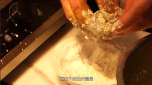 加生粉,把它抓成糊状,然后定下型,摆成一个虾的形状
