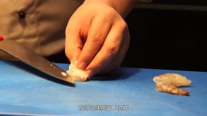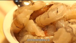 处理虾,把虾开背,在虾的里面打上两刀。这样,虾炸完以后肉会翻开