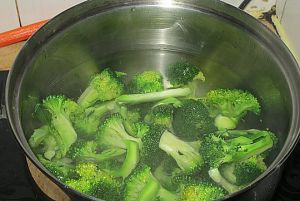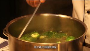 半分钟左右,等它再次沸腾的时候,把西兰花捞出来待用。