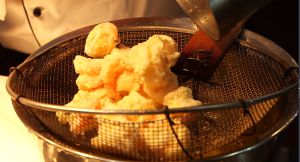 开始炸虾,把虾炸到外酥里嫩,捞出备用。