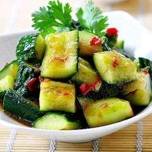 干辣椒切碎(可以买辣椒丁)撒在黄瓜上,