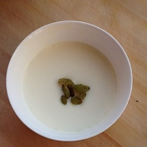 然后把牛奶倒入一个口大的碗中,过了几分钟之后你会发现牛奶起了一层皱皱的奶皮