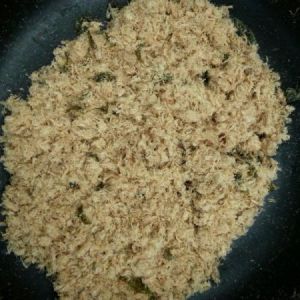 肉差不多成肉丝后,开小火,不停地翻炒肉丝,炒干他的水分,中间分两次加糖调味,炒的差不多的时候用筷子把肉打散蓬松。