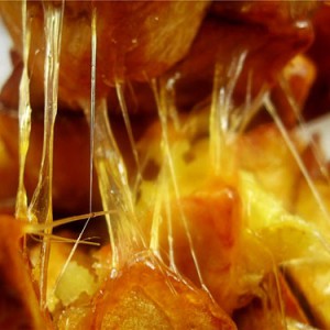 炸~油烧开后改成小火后放入地瓜~~地瓜容易上色~~火不要大了。