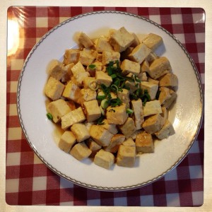 用葱姜爆锅,放进豆腐轻推,倒酱油,加水,加糖和盐,干贝素。收汁即可。