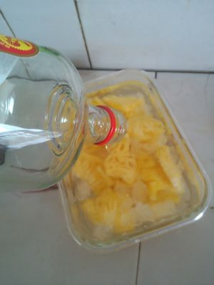 倒入没过菠萝的米酒,密封好,一个月之后可以喝了,当然越久越好喝哈。