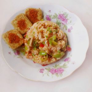 加饭,炒到稍微软一点后加盐、味精,尝一下差不多就可以出锅了