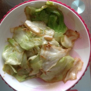 将包菜倒入锅中翻炒,加入耗油炒至包菜成熟,加入盐,鸡精成盘出锅。