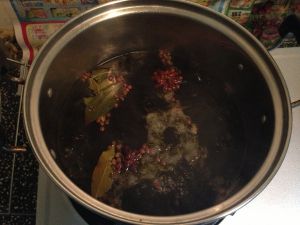 煮鸡蛋水中加入两个大料、少量花椒、一汤勺生抽、两汤勺老抽、一小片桂皮、3片香叶、适量盐,少量花茶叶煮开20分钟。