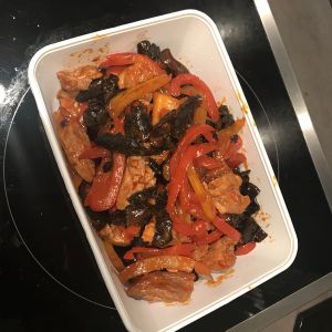 先倒入青椒翻炒,因为木耳熟的比较快,所以先放一边噢