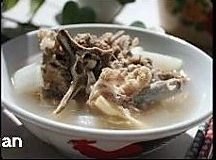 炖到锅内汤浓,萝卜软烂,羊蝎子也变得软烂,关火就可以连吃肉,再喝汤啦!