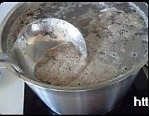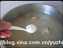 大火烧开以后,用勺子撇去浮沫,一定要彻底的撇清浮沫。