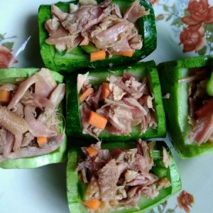 把拌好的鸡肉装进黄瓜里,不但美观,而且口感超好!