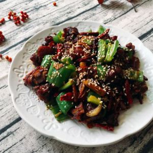 然后关火加入青椒片翻炒均匀后就可以出锅了