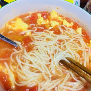 炒完加水,水量当然是看心情,放些盐,盐量我都是靠嘴尝的,有条件可以当鸡精和淀粉,淀粉能让西红柿在汤里固定住,我瞎扯的