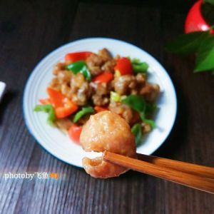 捞出冲洗干净,控干水,撒上2勺脆炸粉(淀粉也行),用手抓匀,使淀粉均匀蘸满大肠。