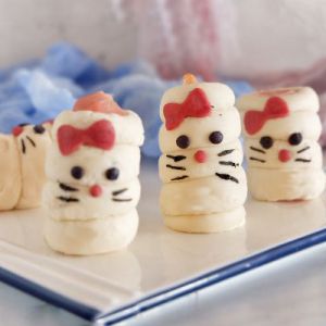醒发30分钟,放入蒸锅蒸15分钟左右,取出用色素画出胡子即可。