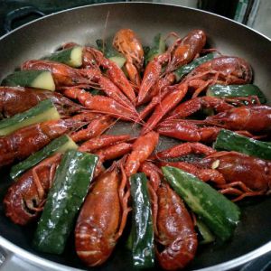 焖至留少量汤汁加入黄瓜小火拌好出锅