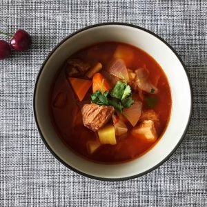 待肉八分烂时(距离你喜欢的软烂程度) 放入土豆 胡萝卜 洋葱 放盐