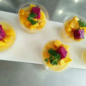 倒入备好的模具,倒至不八分满,放入冰箱冷藏两小时后。