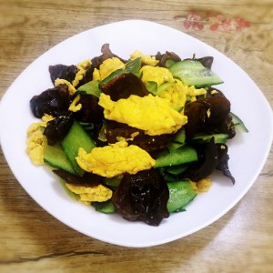 放入黄瓜片,调入少许盐,放放炒好的鸡蛋,勾薄芡即可出锅。