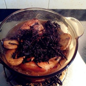 呼呼~一个半小时终于到了,真是狠废时间的一道菜呢。接着装盘,把煎好的香芋也放进去,上锅蒸20分钟,出锅就可以开吃咯!