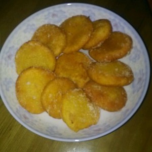 油温加热至四成时,关小火,放入南瓜饼,待南瓜饼浮上来即可。