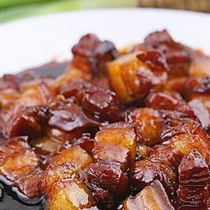 加入少量老抽上色,改大火收汁,待酱汁包裹在肉上,装盘即可