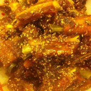 最后撒入芝麻,乘盘出锅啦