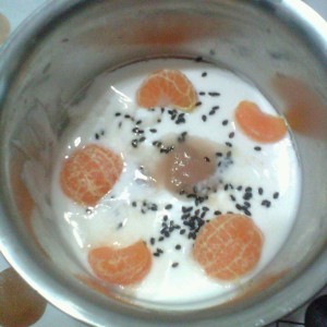 然后加入菌粉(淘宝有买的)或者一小瓶酸奶,再加点白砂糖搅拌均匀