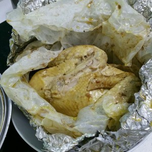 高压锅加水,放进蒸架或蒸盘,选择“鸡肉/鸭肉”或蒸40分钟