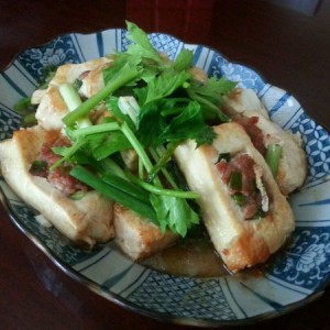 放入葱芹、加半碗清水,加盖焖5分钟。中小火~