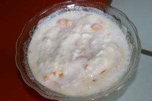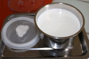 按1:5的比例加入纯牛奶,搅拌均匀(一份酸奶,五份纯牛奶)