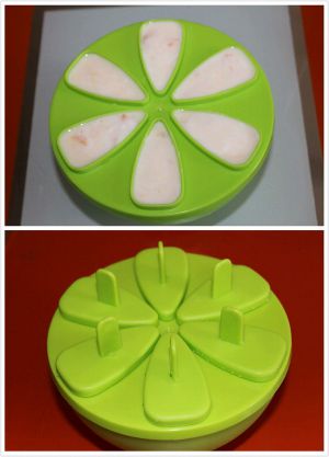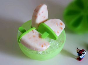 吃的时候用水冲一下雪糕模具,再放置几分钟即可容易把雪糕取下来