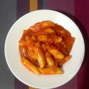 先把洋葱炒出香味,再把其他材料放入锅中,不断轻搅!简单又好吃的辣炒年糕完成了!