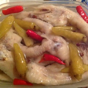 煮十分钟后 过凉水 分剪 放入泡椒 小米椒 盐 花椒 凉白开