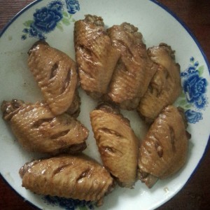 腌好后的鸡翅在开水中煮一会,洗干净备用