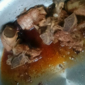 如果喜欢吃比较软的排骨,可用高压锅压一下。我用的是电力压力锅,选择肉类,点开始,大约20分钟即可。