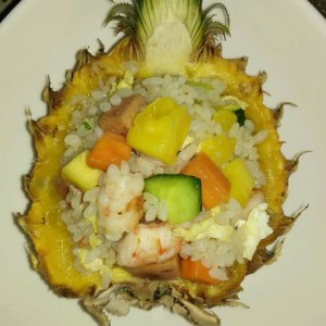 把炒好的饭盛到菠萝里,是不是好看又好吃呢!