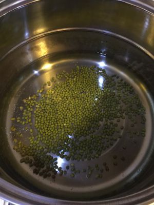 搅拌均匀,在用勺子将绿豆碾碎,不用全部碾,这样可以做出即有沙又有豆的综合口感。