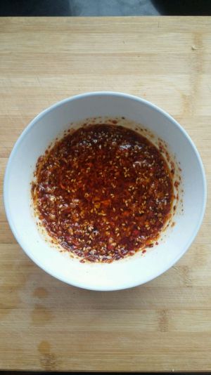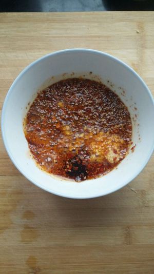 起锅热油,将八成热的油倒入碗中,搅拌均匀