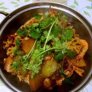 最后出锅盛盘,放上香菜点缀,一锅麻、辣、鲜、香食材丰富的麻辣香锅就完成啦,不要太费米饭哦。