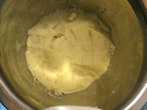 把土豆蒸熟(筷子可以戳穿整颗)~然后压碎(没有土豆泥器的可以用饭勺!!)