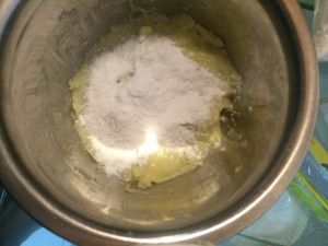 倒入糯米粉~1:1的量~ 然后再倒牛奶