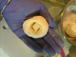 然后往里塞芝士~~ 塞完继续揉成圆~~