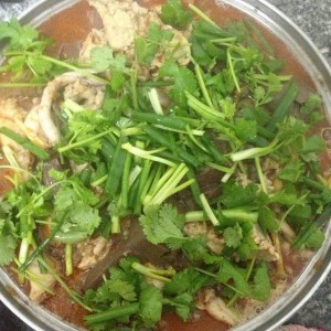爆香完 放进适量的水。煮开。然后下鱼。煮两分钟